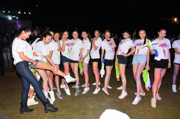 在荧光跑的基础上加入冰雪元素,并邀请超人气偶像黄晓明与粉丝近距离接触,跑友可以边跑步,边欣赏独特的荧光景观,感受深圳冬天飘雪奇观。